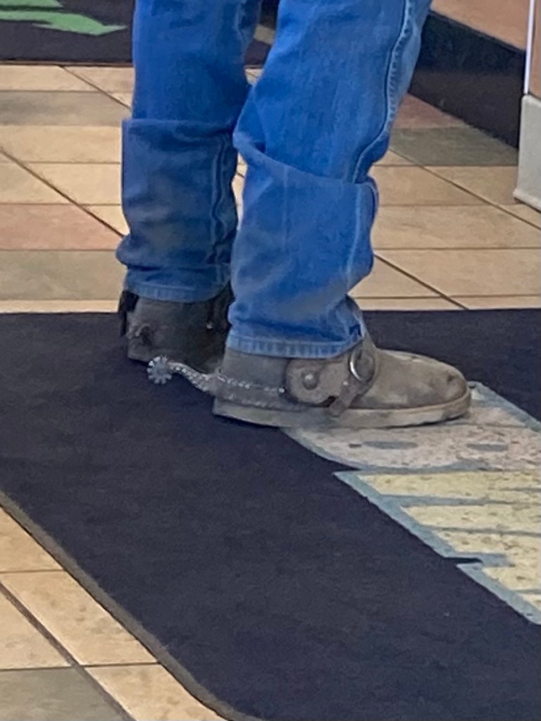 At lunchtime in New Meadows, Idaho we saw a real cowboy wearing spurs. He wasn’t wearing cowboy boots. I haven’t seen spurs since Holiday, Texas.