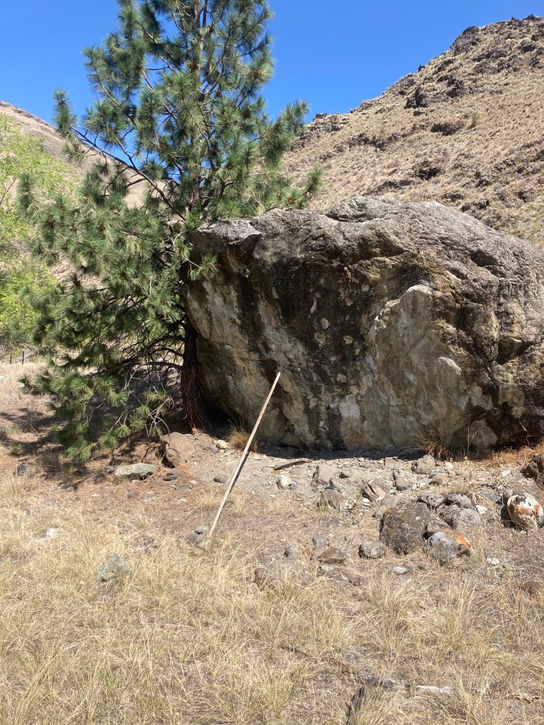 The Idaho Department of Transportation is trying to keep this boulder from tumbling onto the roadway.