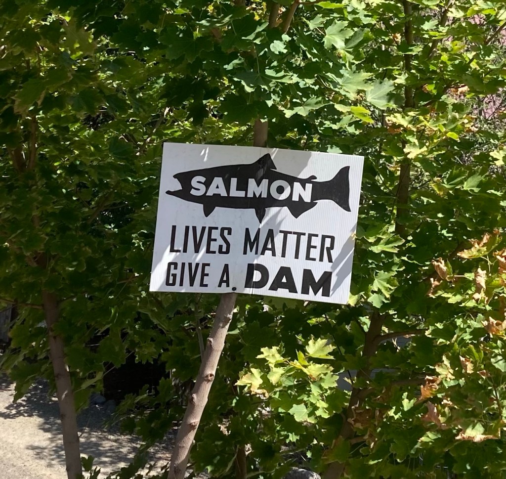 There are many signs about saving salmon. We did our part and did not have salmon for dinner tonight.