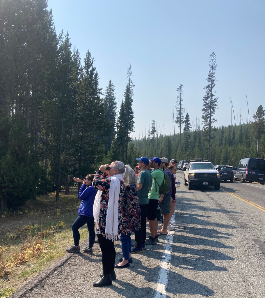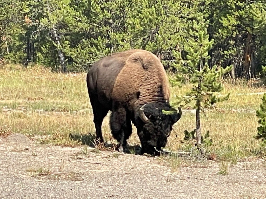 We saw a couple of bison here and there. We stopped at this location because of the crowd of people. Everyone said there was a bear on the edge of the meadow. We could not see it and Chad had his meat sticks in a smelly proof bear bag so the bear had no desire to come over.
