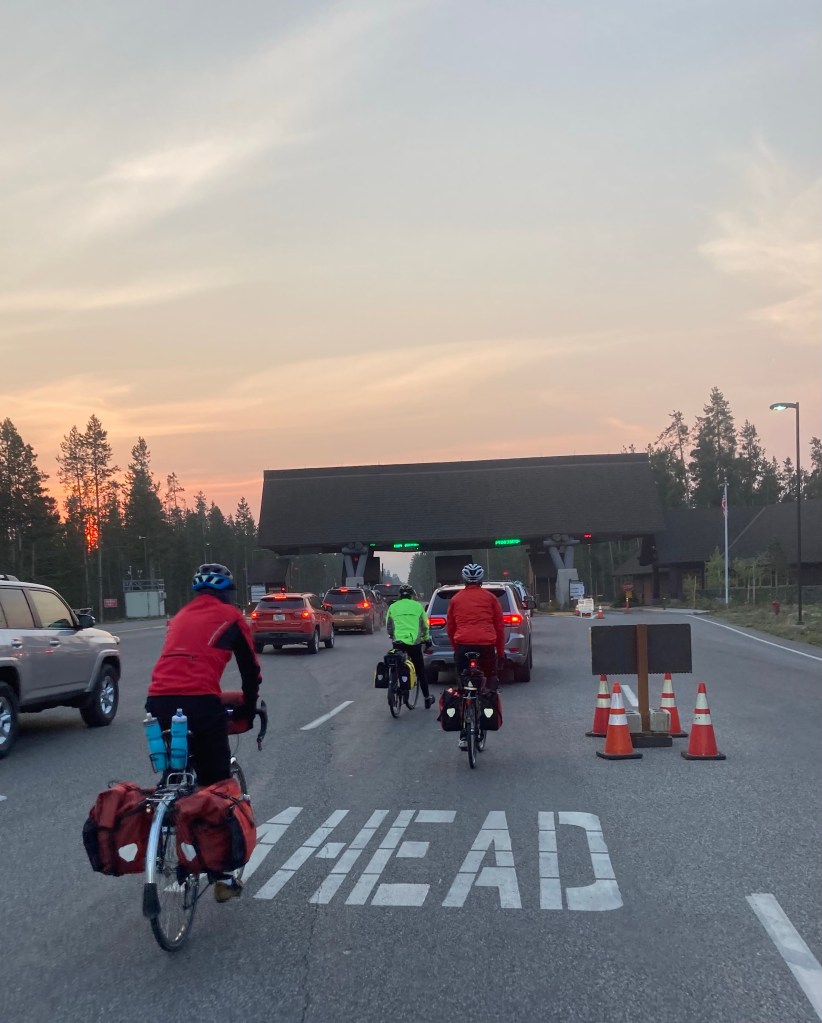 The entrance to Yellowstone was only a mile or two from our hotel in West Yellowstone, Montana. We were there at Sunrise.