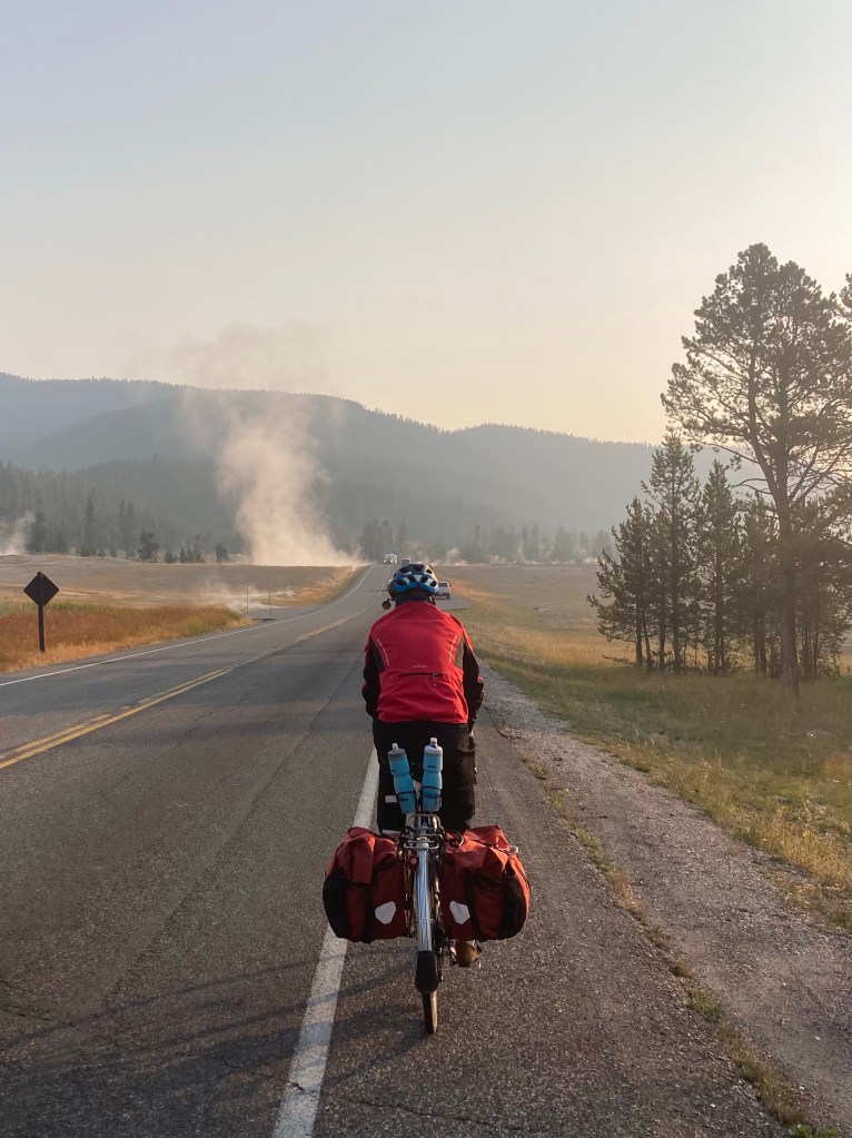 Even though you expect all the steam and hot springs it is still freaky when you peddle towards them.