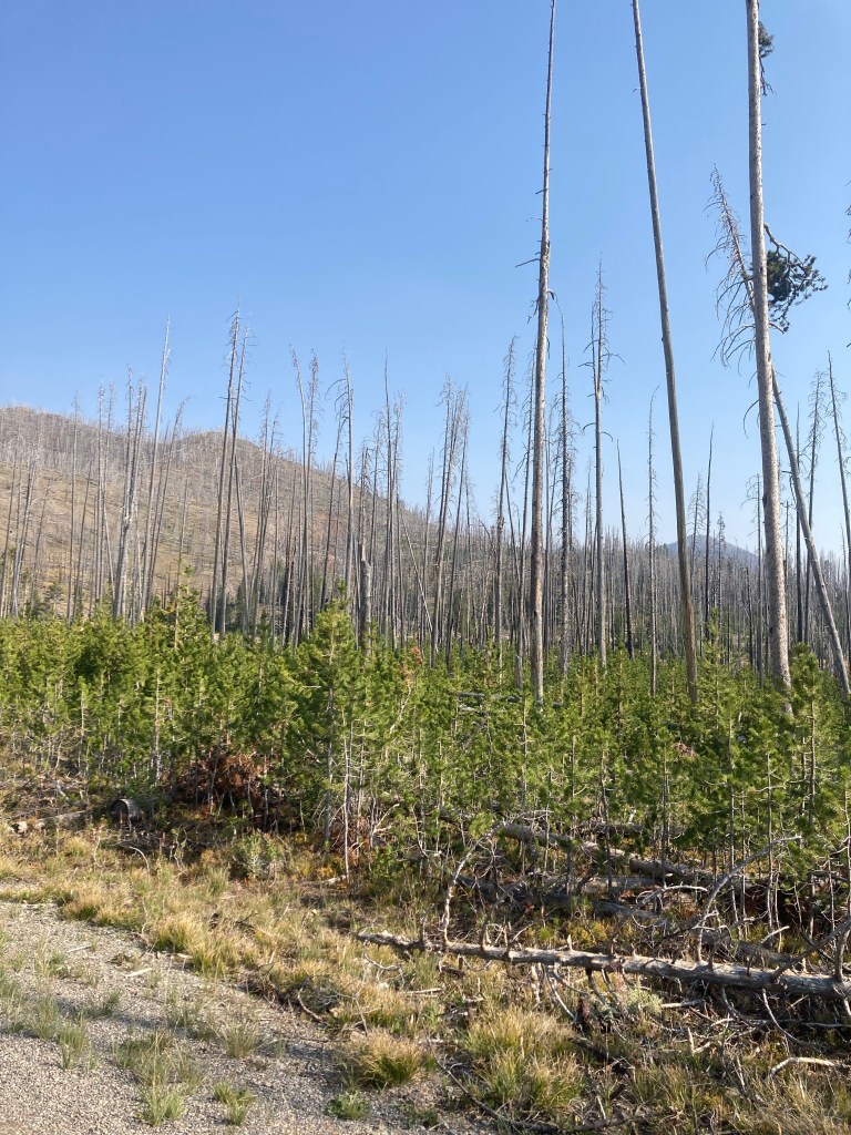 As we climbed up and out of Yellowstone Park a lot of the Lodgepole pines were just sticks. It was a surreal scene.