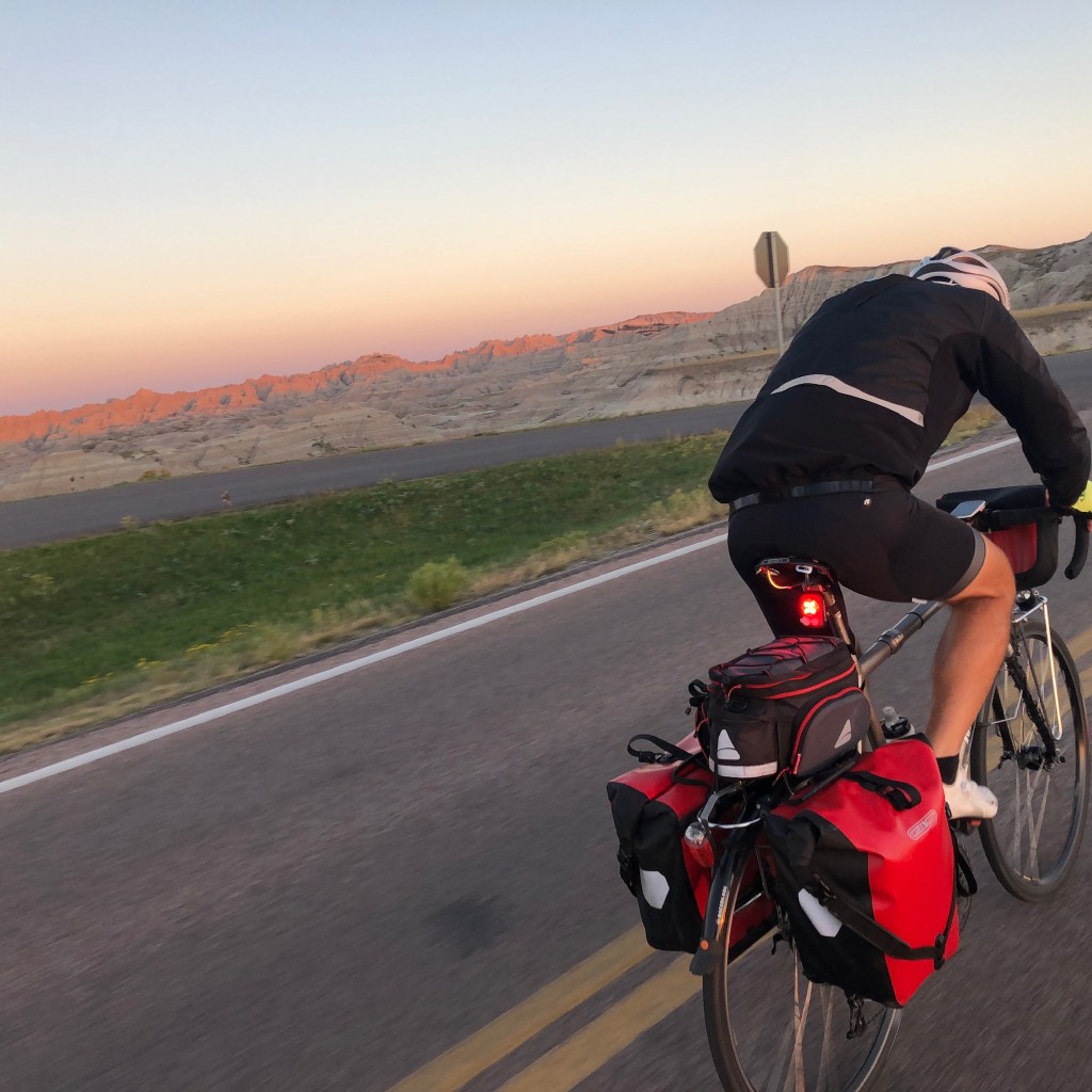 Unfortunately, we rode through the main part of the Badlands in the dark. The sky was clear, the stars were shining and the white hills glowed eerily in our headlight beams.