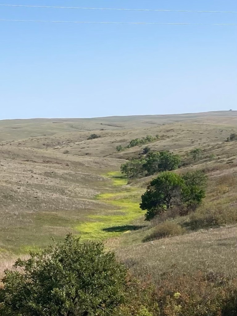For the next 60 miles we didn’t see much of anything. For a while we could pass the time by reading the backside of the Wall Drug billboards. The hills were green and there were some cattle.