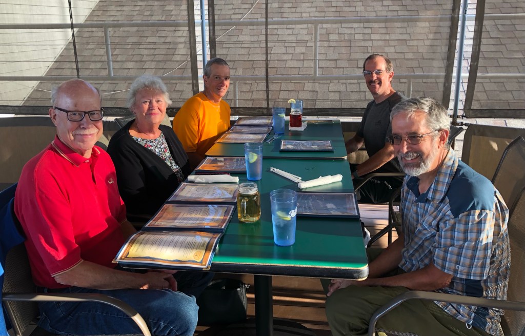 Jim and Deb Zahler drove up from Edinboro, Pennsylvania to join us for dinner. Jim was a work colleague for my entire career and remains a good friend. It was great to see them again. Deb also gave us each a giant brownie. Thanks so much for the treat!