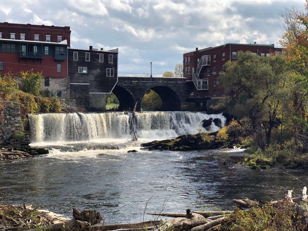 Middlebury also has a natural, 18-foot high waterfall in the center of town. The Otter Creek falls became the center of industry with many mills lining the river banks. The 1840 Stone Mill (building on left) is the only one that survives today.