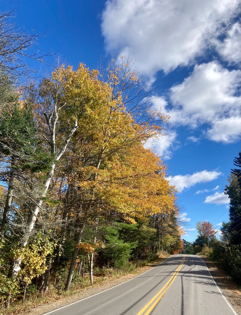 Today was a perfect Maine fall day. Crisp temperatures and blue skies greeted us this morning. Everything was much the same as yesterday – lots of hills and curves, fall colors, and many church buildings with tall steeples.